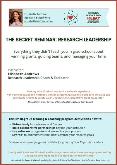The "Secret Seminar" provides this missing preparatory piece, based on 20 years helping faculty surge forward in their research careers. By taking the guesswork out of key areas like grant writing, time management, technology, and team building, I've helped researchers access more than $30 million in funding, publish internationally award-winning books, and successfully launch major multi-national initiatives.